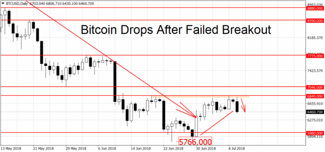 Вчера главная криптовалюта достигла максимума $6 806, всего на 34 доллара ниже предыдущего максимума $6 840. Как уже упоминалось в нашем предыдущем обзоре, для завершения нисходящего тренда нужен пробой вверх этого уровня. Поскольку этого не произошло, пара BTC/USD остается в нисходящем тренде на дневных таймфреймах.
