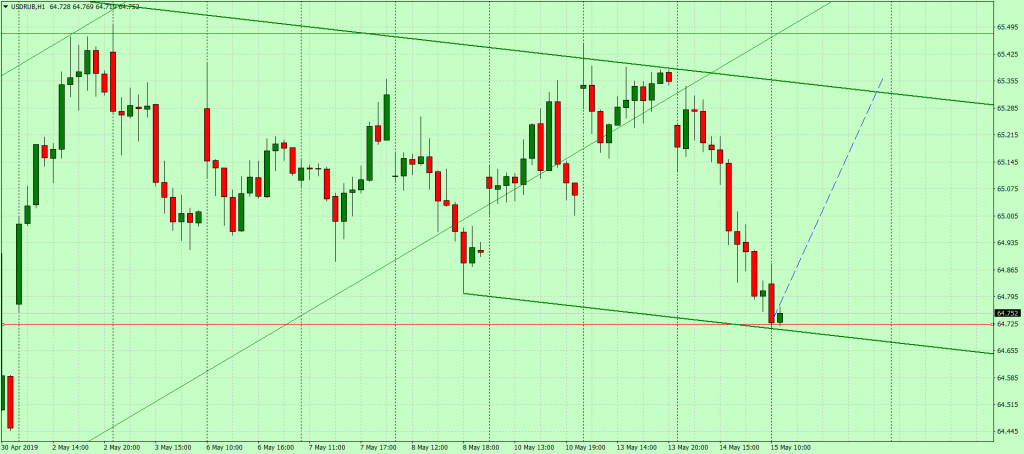 Курс доллара к рублю сегодня колеблется около вчерашних минимумов на 64.75. За вчерашний день рубль полностью отыграл предыдущие потери. Российская валюта укрепляется на фоне позитивной динамики нефти. Цены на нефть растут после нападений на танкеры и корабли в Персидском заливе. Были атакованы и добывающие установки в Саудовской Аравии. А спрос может вырасти, так как Трамп заявил, что американо-китайское соглашение будет заключено рано или поздно. Однако усиление рубля может оказаться под угрозой после увеличения покупок валюты Банком России, которое начнётся сегодня. А на следующей неделе начинается майский налоговый период.